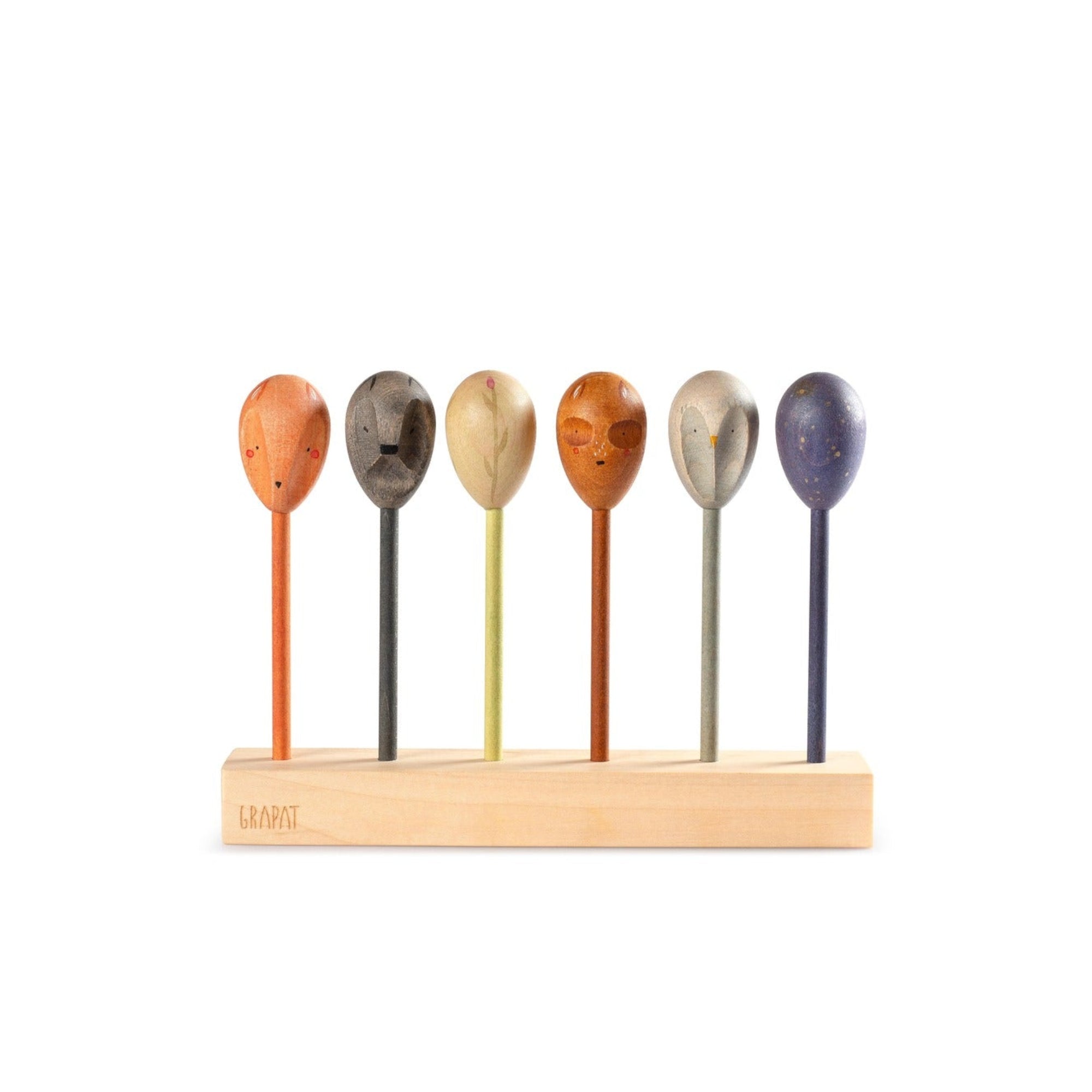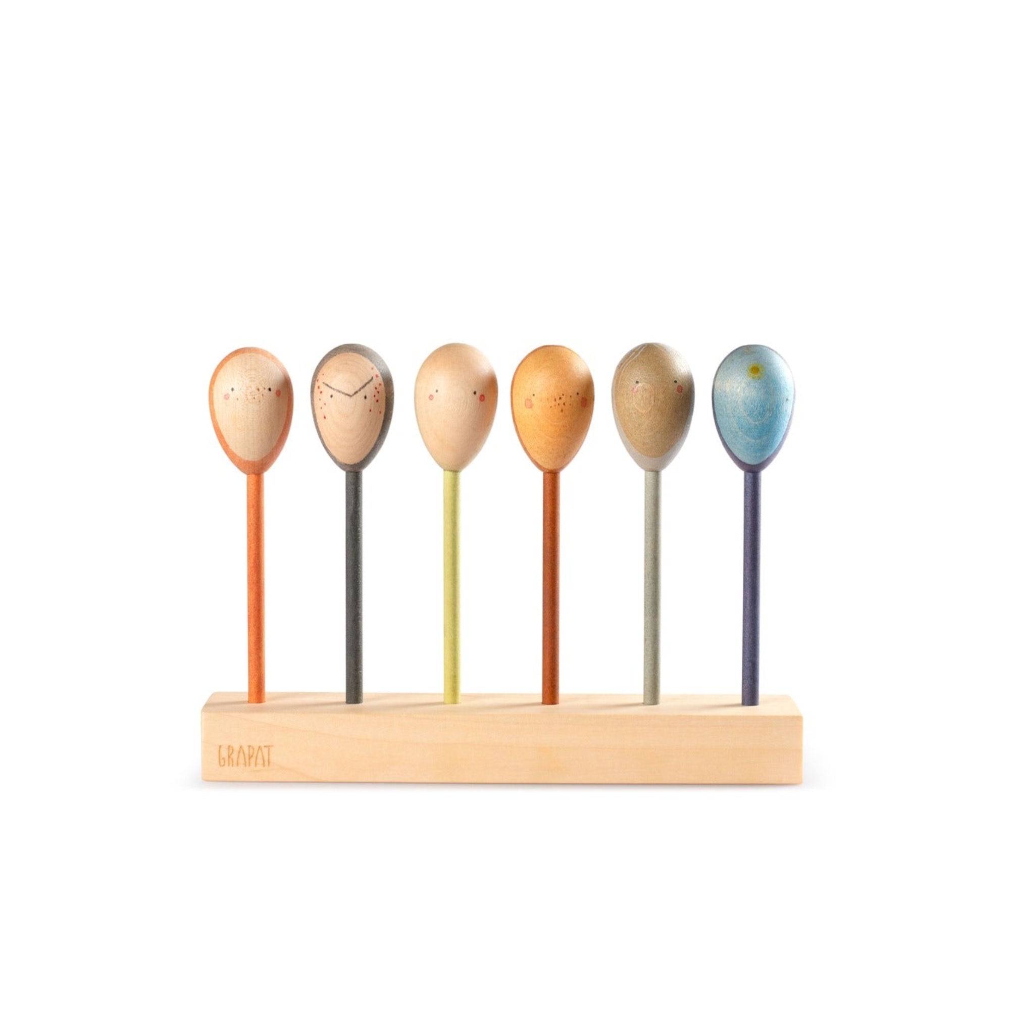 Set od 6 dvostranih lutaka stvoren da probudi maštu i ljubav prema pričanju priča. S jedne strane tu su mali lisac, mudra sova, mjesec, cvijet, ljuti vuk i dobri medvjed. Kada ih okrenete, pretvaraju se u dječaka, mudru ženu, sunce, vilu, nestašnu djevojčicu s pjegicama i još mnogo likova.