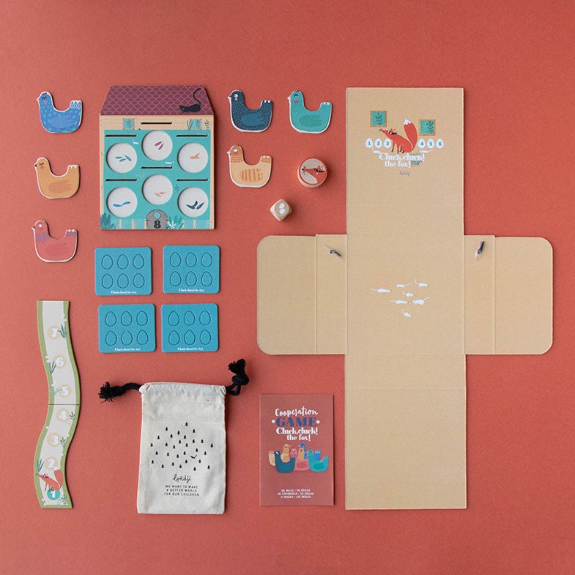 U Cluck Cluck the Fox djeca i odrasli igraju zajedno — planiraju, biraju poteze i pokušavaju da zaštite gnijezdo prije nego što se lukava lisica približi. Kockica odlučuje hoćemo li spasiti jaje, skloniti koku ili pustiti lisicu da napravi korak.