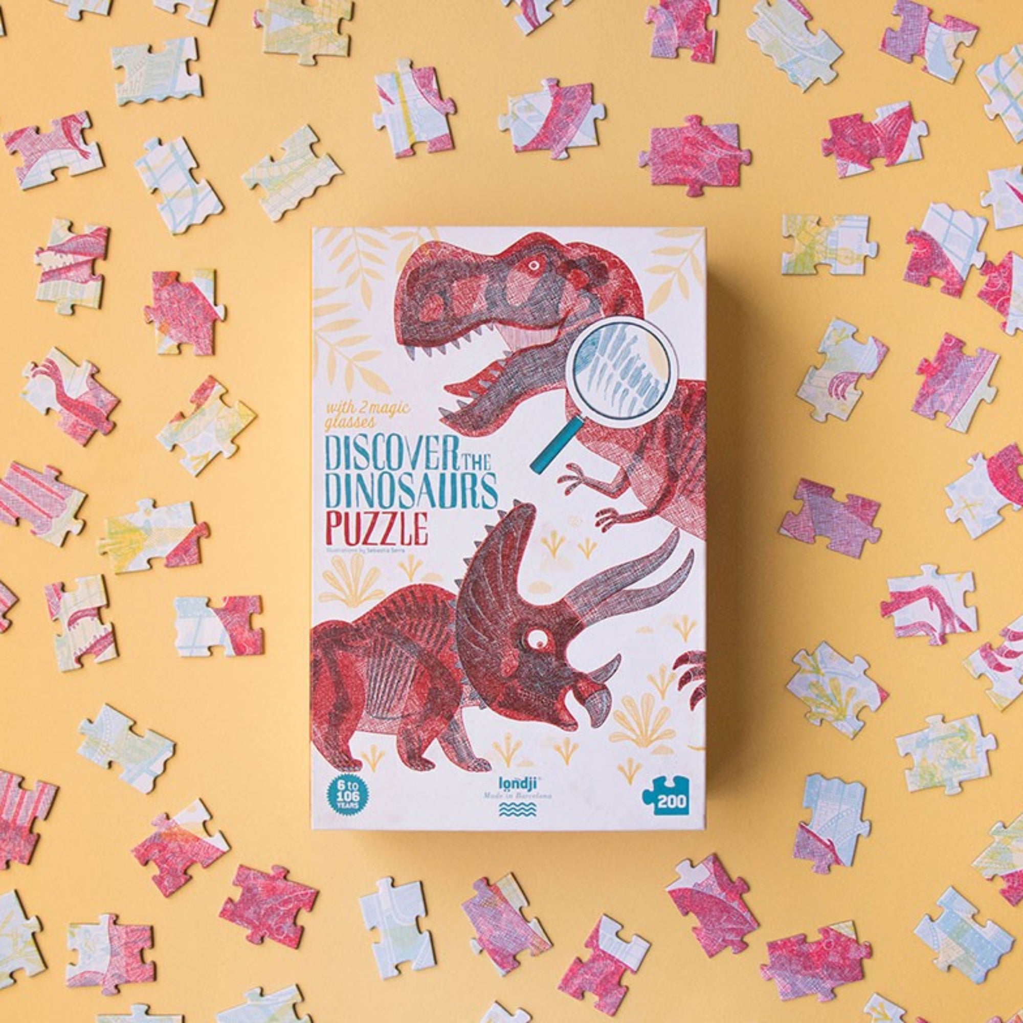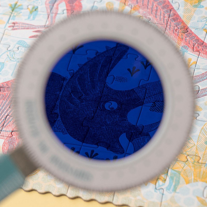 U setu dolazi slagalica od 200 dijelova i dvije lupe — crvena i plava.