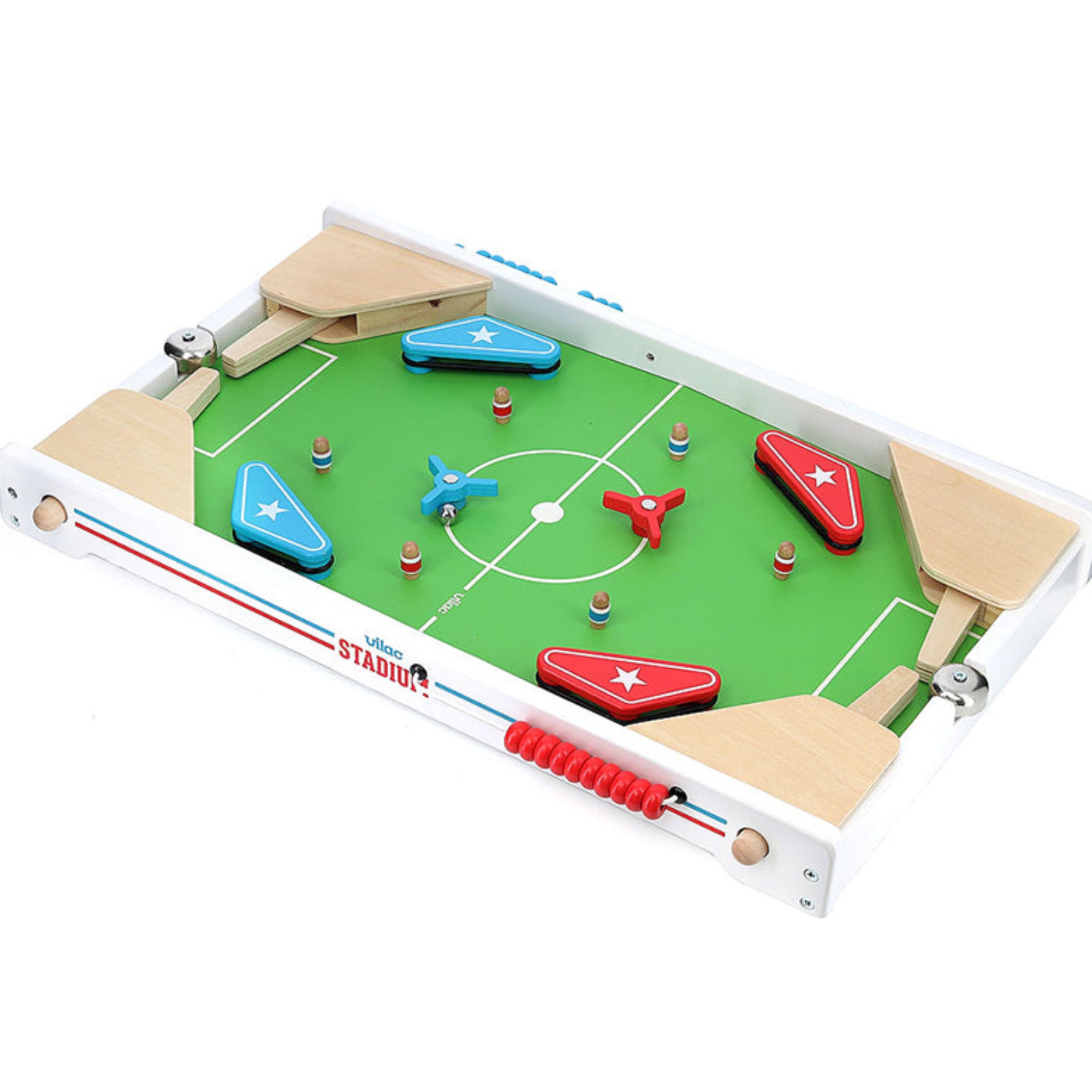 Drveni fliper koji unosi pravu malu utakmicu u dječiju sobu. Dva igrača, tri metalne loptice i jednostavna, jasna igra: ko postigne gol — zvono to objavi. Sa strane čeka mali drveni brojač, pa svaka partija postaje mala porodična liga.
