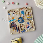 With this Magnetic Maze, little hands guide colorful balls through a joyful world of clowns, elephants, horses, and dogs. Using the magnetic wand, children match colors, follow paths, and spin the clown’s wheel — a challenge that’s both calming and full of discovery.