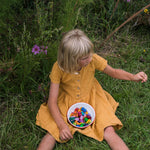 Set od 36 drvenih elemenata u obliku pečurke u 12 boja duge, savršen za stvaranje mandala, šumskih prizora i svjetova slobodne igre.